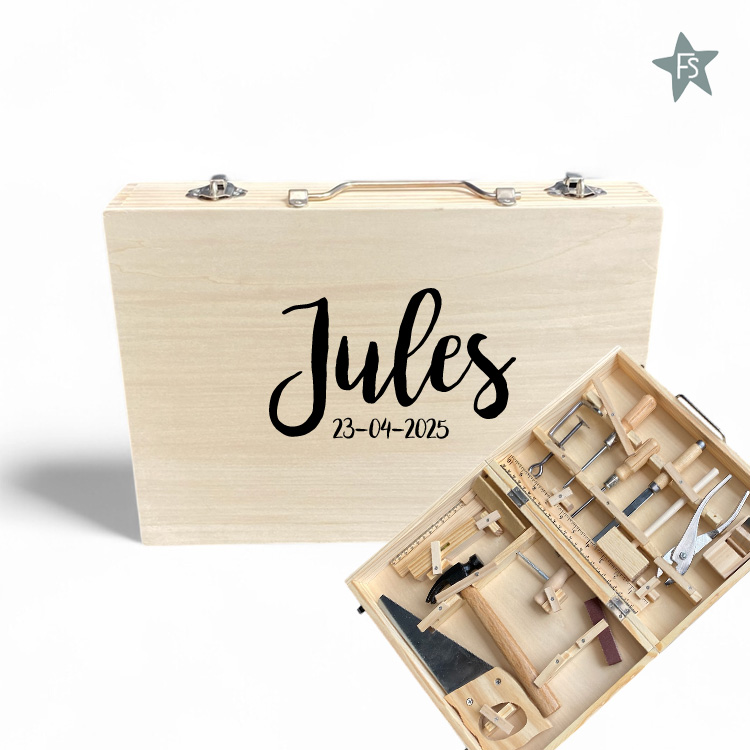 Voer je eerste klussen en reparaties uit met deze luxe houten gereedschapskist. De gereedschapskist bevat een hamer, een zaag, een schaaf, een moker, een vijl, een tang, een platte en een kruiskopschroevendraaier, een boor, een lijmklem en schuurpapier. Met de waterpas, liniaal en winkelhaak zorg je er voor dat al je timmerwerken keurig recht staan! Na het klussen berg je het gereedschap veilig op in de stevige koffer. Op naar de volgende klus!